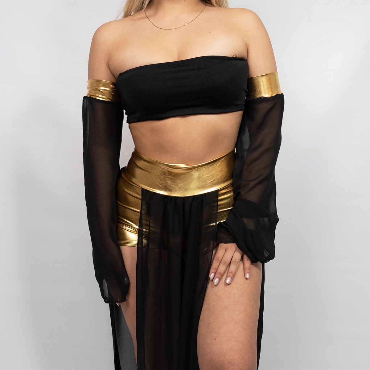 Reina como Cleopatra con este deslumbrante disfraz inspirado en la majestuosidad del antiguo Egipto. Confeccionado con telas elegantes y detalles dorados único, este diseño realza tu poder y encanto, evocando la grandeza de una de las figuras más icónicas de la historia. Ideal para fiestas temáticas o eventos especiales, disfraz de cleopatra